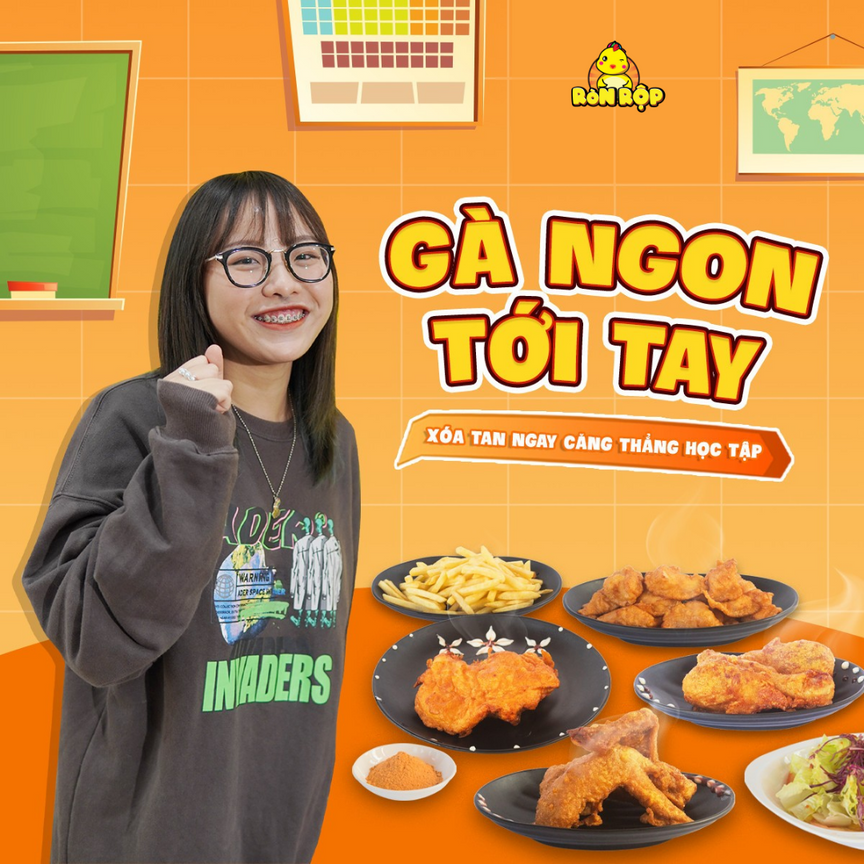 RÒN RỘP sẽ luôn kiên trì và không ngừng đổi mới để mang đến những miếng gà tốt cho sức khỏe của khách hàng và còn phải thật thơm ngon, chất lượng, mang đến những phần ăn no bụng cho các bạn học sinh sau những ngày học căng thẳng thẳng, mệt mỏi.